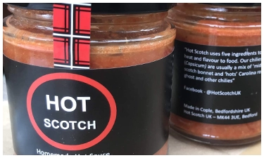 Hot Scotch is a new business start-up, producing artisan hot sauce from Cople, Bedfordshire, UK. Using five main ingredients to bring heat and flavour to food, its chilies (Capsicum) are usually a mix of ‘mids’ (Scotch Bonnet) and ‘hots’ (Carolina Reapers, Ghost) and other chilies.